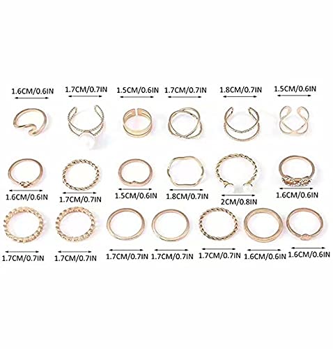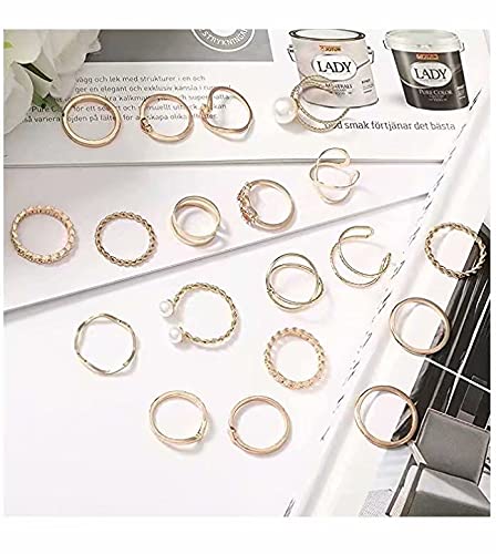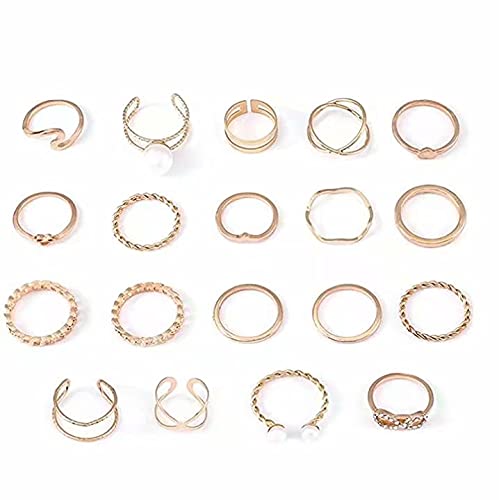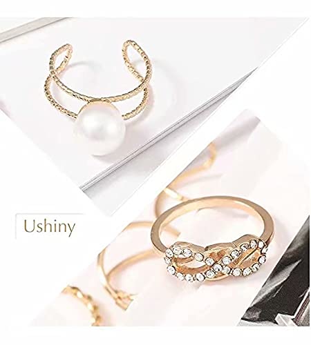 Ushiny Anelli di barretta di cristallo Anelli di articolazioni di perle d'oro Anelli di anelli per sempre Set di anelli di cuore Accessori di gioielli per donne e ragazze (18 pezzi)
