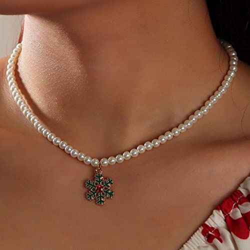Ushiny Collana girocollo con perline di perle Confezione regalo di Natale Collane con ciondolo Gioielli per donne e ragazze (snowflake)