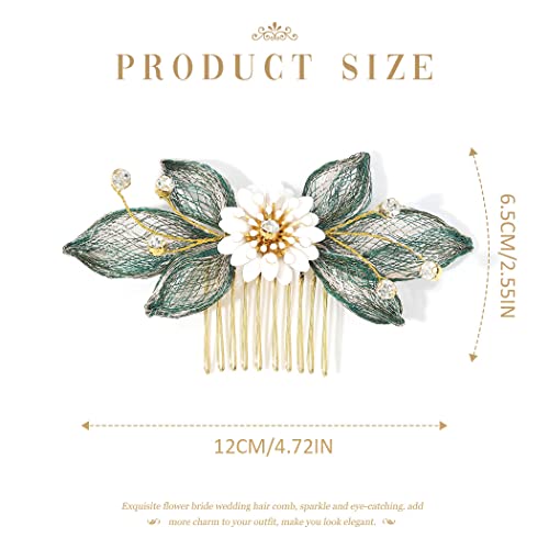 Ushiny Pettine per capelli da sposa con fiori, accessori per capelli dorati con strass, per donne e ragazze