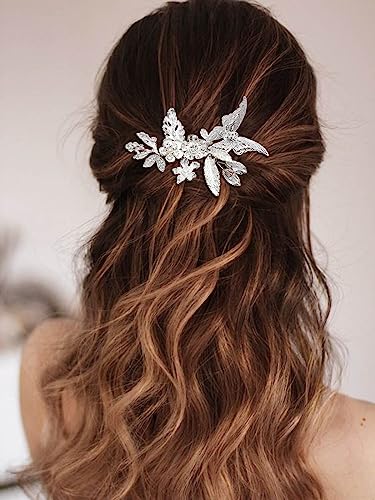 Ushiny Pettine per capelli da sposa con strass, accessori per capelli argentati, in cristallo, per donne e ragazze