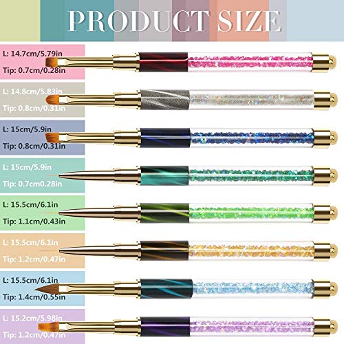 USHION Pennelli Unghie Art 8 pezzi Set Professionali Per Gel UV/Acrylic/Shellac,Capelli di Nylon Design Rhinestone Glitterato Kit Pennelli Nail Art Detailing/Scolpire/Fioritura/La pittura/Disegno