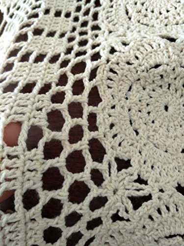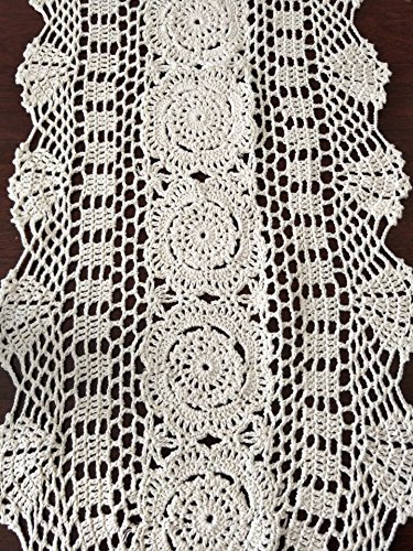 Ustide - Set di 2 runner da tavola ovali, in cotone di colore beige, fatti a mano all'uncinetto, con motivo floreale, Cotone, Beige, 11"X31"(30cmX80cm)