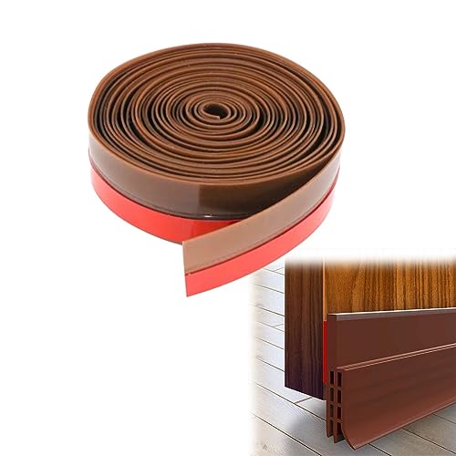 USTNIR Guarnizione Sottoporta in Gomma, 100cm x 5cm Guarnizione Per Porta Adesivo, Striscia di Sigillatura Paraspifferi, Guarnizione Inferiore Insonorizzata Antivento Antipolvere Anti Bug,Marrone