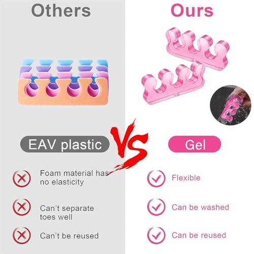 Realizzato in gel flessibile, il nostro separatore per dita dei piedi è estensibile, morbido e durevole, garantendo una vestibilità universale per la maggior parte delle dimensioni di dita e dita dei piedi.