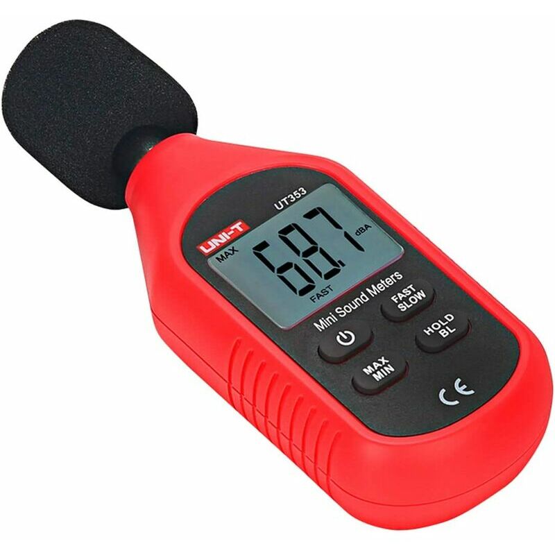Fonometro UT353. Misura da 30 dBA a 130 dBA. +/- 1,5 dBA con risoluzione di 0,1 dBA. Interfaccia intuitiva. Retroilluminazione bianca e display LCD chiaro per una facile visibilità in situazioni di oscurità. Personalizzata e precisa. Tempo di campionamento regolabile. Premere “Fast/Slow” per selezionare tra un tempo veloce di 125 ms e un tempo lento di 1 secondo. Premi Max/Min per modificare la misurazione massima, minima o normale. Leggero e compatto. Facile da trasportare e riporre. Design ergonomico. Presa comoda. Microfono a condensatore da 1/2'' e schiuma antivento. Premere brevemente HOLD/BL per salvare o uscire dalla memorizzazione dei dati. Premi a lungo HOLD/BL per attivare o disattivare la retroilluminazione. Versatile e affidabile per uso personale e professionale. Ampiamente utilizzato nel rilevamento del rumore, nel controllo di qualità, nel monitoraggio della salute, nella misurazione del rumore ambientale in fabbrica, industria, traffico, ufficio, audio domestico