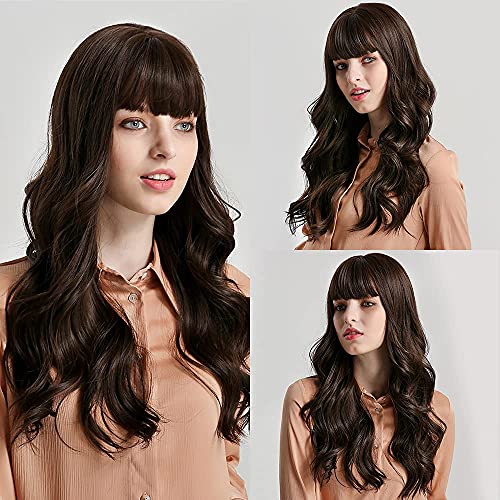 Utapossin Parrucca Marrone Riccia Lunga per donna, Parrucca Marrone nero, Capelli Sintetici Lunghi Ricci Parrucche da Castano, Parrucca Lunga Marrone Riccia con Frangia, per Uso Quotidiano