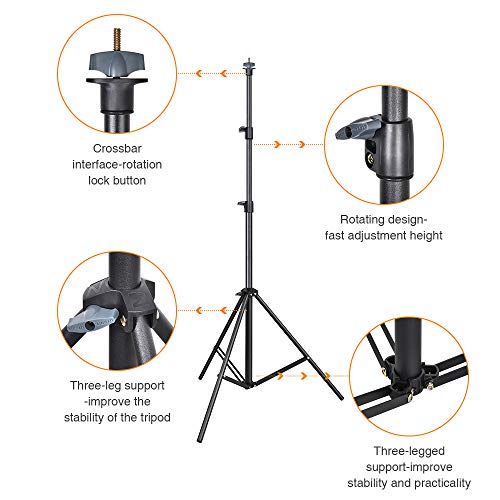 【Aluminium Alloy & Durable & Non-Rusting】The backdrop background stand is made of aluminum alloy and is durable and resistant to rust. The crossbar interface uses a rotary locking button.Three-legged design, stable support.