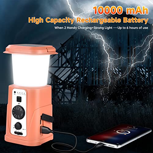 UTEBIT Lanterna da Campeggio Lampada Emergenza con Radio Portatile Solare, 10000mAh Power Bank, LED Lampada per Tende e Allarme SOS, Radio a Manovella AM/FM, LED per viaggi, escursioni