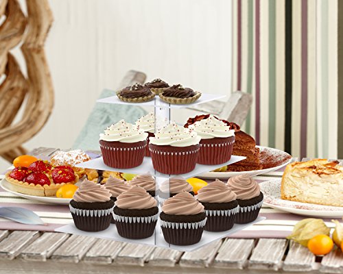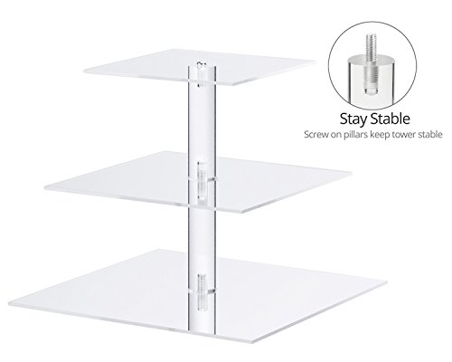 Utenlid Acrylic 3-Tier Square Stacked Party Cupcake Stand with Stable Screw-On Pillars - Tiered Cupcake Stand / Cupcake Tower