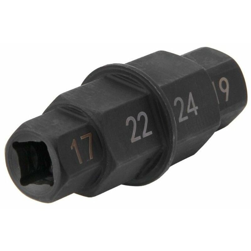 Specifiche: Materiale: metallo Colore: nero, argento (opzionale) 4 dimensioni esagonali metriche: 17 mm, 19 mm, 22 mm, 24 mm Dimensioni confezione: 5*3*3 cm/1,97*1,18*1,18 pollici. Peso confezione: 50 g/1,76 once. Elenco dei pacchetti: 1 * Strumento per asse esagonale
