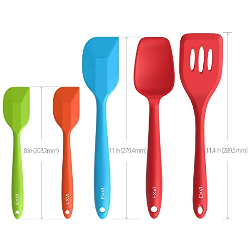Utensile da cucina spatola in silicone EXVI di 5 pezzi - 3 spatola in silicone resistente al calore, 1 cucchiaio in silicone antiaderente, 1 set girevole in silicone flessibile per cottura o cottura