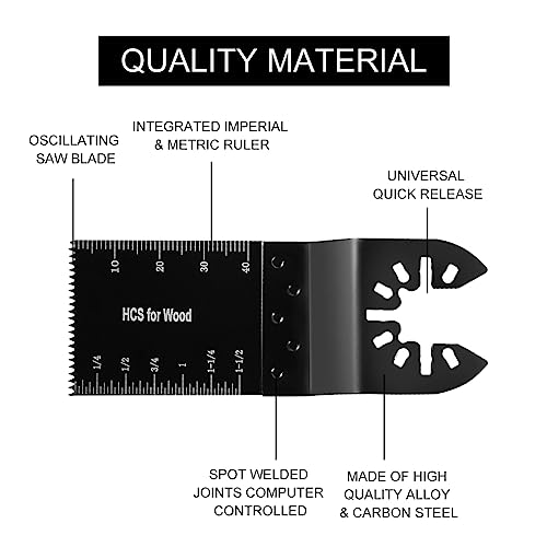 【Taglio accurato】La lama multifunzione presenta segni di scala su entrambi i lati (comprese letture inglesi e metriche), con valori di scala chiari e visibili, che consentono di misurare rapidamente e accuratamente la profondità di taglio, rendendo il lavoro più facile, più accurato e più efficace.