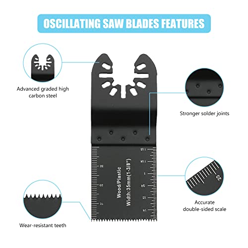 【Universale】 La lama della sega oscillante adotta un'interfaccia universale, la larghezza della lama è di 35 mm ed è compatibile con oltre il 95% degli utensili oscillanti sul mercato.