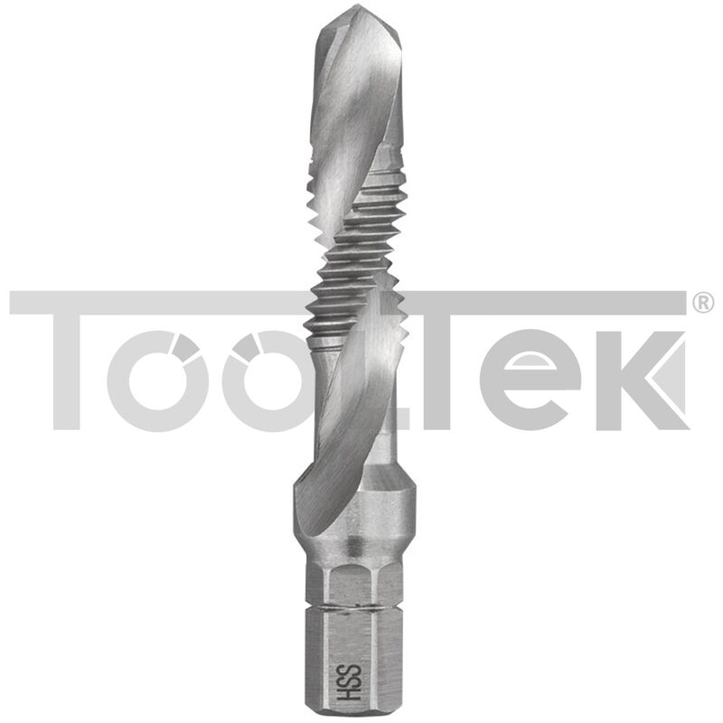 Utensile in acciaio HSS 3 in 1, punta maschio e svasatore. CARATTERISTICHE: Dimensioni filettatura: M10 x 1,5 Lunghezza totale: 55 mm Taglio materiale: HSS Attacco: 1/4 esagonale Prodotto di qualità.