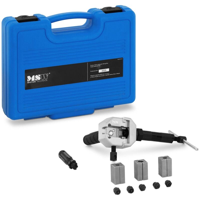 Utensile svasatore manuale MSW-HFT-01 di MSW _x000D_ Con questo strumento svasatore idraulico puoi formare le terminazioni di un tubo, nel caso di tubi di freni o idraulici, per assicurare in modo preciso le viti a testa cilindrica per collegare i tubi. Le ganasce e i tasselli di spinta sono fatti per formare tubi di freni con un diametro di 4,75 e 6 mm e generare bordi flangiati convessi normati DIN e bordature doppie secondo SAE. Grazie al dispositivo idraulico e al materiale di alta qualità delle parti dell'attrezzo, è possibile anche lavorare su tubi di acciaio. _x000D_ Il maneggiamento del dispositivo per le ganasce e i tasselli di spinta è particolarmente semplice e l'attrezzo può essere usato anche direttamente sull'auto. Le forme permettono modifiche anche ad un angolo di 45°, necessarie con alcune viti a testa cilindrica. Il set composto da 15 pezzi viene consegnato in una valigetta di plastica in cui ogni pezzo trova il suo posto. Grazie alla maniglia integrata, il set è