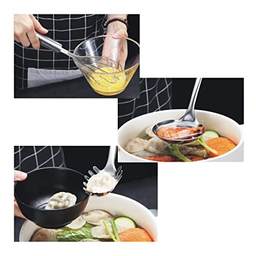 Set Utensili da Cucina, in Acciaio Inox Satinato,8 Pezzi, Include Frusta, Mestolo, Paletta, Pelapatate, Pinza, Prendispaghetti, Schiumarola, Spatola