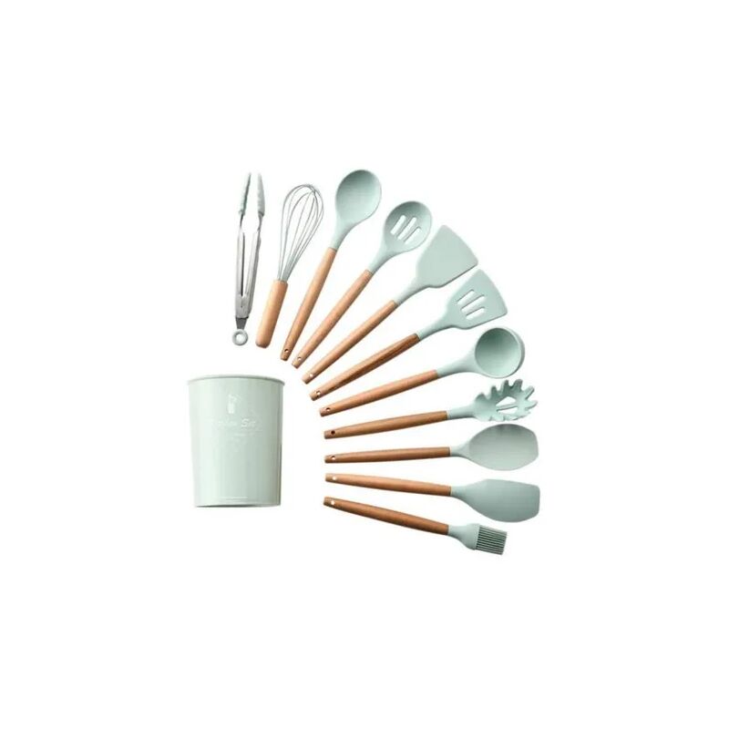 Panoramica del prodotto:: Specifiche: Colore: verde Dimensioni confezione: 12,5 x 12,5 x 33,5 cm Materiale: silicone Caratteristiche: 1.Utensili da cucina non corrosivi: tutti gli utensili da cucina sono realizzati con testine in silicone termoplastico di alta qualità.alta qualità progettata per proteggere la superficie di preziose pentole antiaderenti. 2.Il manico in legno del set di utensili da cucina è progettato ergonomicamente per una presa comoda, non trasferisce il calore per proteggere le mani. 3. Sono realizzati per silicone di prima classe, non per silicone di seconda mano. Quindi non avrebbe l'odore di altri utensili in silicone economici. Questi utensili da cucina in silicone non danneggeranno i tuoi utensili da cucina. 4.L'elevata tolleranza al calore delle teste in silicone impedisce all'utensile di sciogliersi se esposto al calore. Le pentole sono anche antiaderenti e atossiche, facili da usare e conservare. Il pacchetto include: Utensili da cucina in silicone