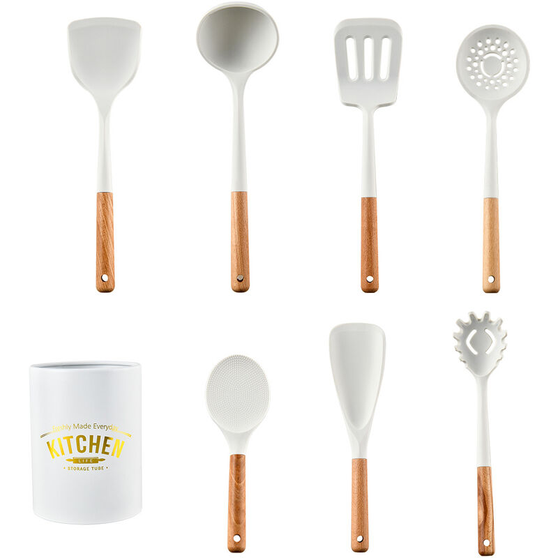 Peso: 940 g Dimensioni: 11,6*11,6*36,5 cm Colore: come mostrato Il set di cucchiai da cucina in silicone è realizzato in materiale alimentare di alta qualità silicone. Senza BPA, può essere utilizzato in qualsiasi tipo di alimento. Il manico in legno di faggio è duro, non facilmente deformabile e resistente. Il manico ha una consistenza uniforme, una bella consistenza e toni morbidi. Abbinalo a stoviglie luminose per mostrare il tuo gusto elegante. Il set di utensili da cucina può resistere a temperature elevate fino a 230 ℃, puoi usarli in sicurezza per cucinare qualsiasi tuo pasto. Non reagiscono con cibi o bevande. Non devi preoccuparti della salute della tua famiglia, non manterrà alcun odore o colore quando lo usi per mescolare pomodori, basilico, noce moscata, ecc. Gli utensili da cucina in silicone possono essere lo strumento universale per il tuo cucina essere. Sono resistenti, a differenza degli utensili in plastica e gomma che si sciolgono facilmente o gli utensili in