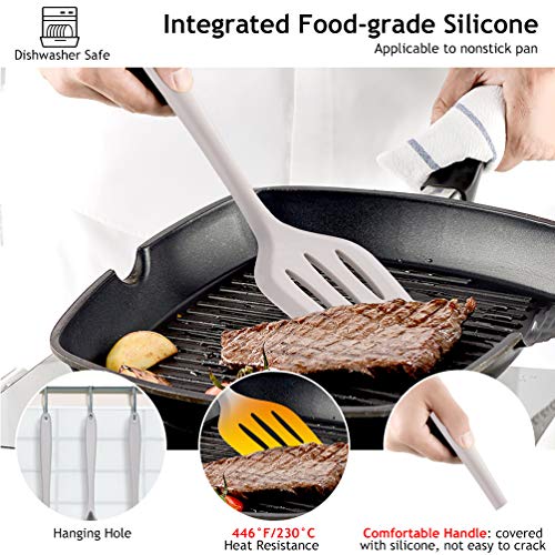 Resistenza alle alte temperature: realizzato in acciaio inossidabile di alta qualità e silicone per alimenti. Facile da tenere in mano. Non facile da rompere come gli utensili da cucina in legno. L'acciaio inossidabile ha una migliore stabilità. La custodia in silicone migliorata offre una migliore presa, effetto antiscivolo e combustione