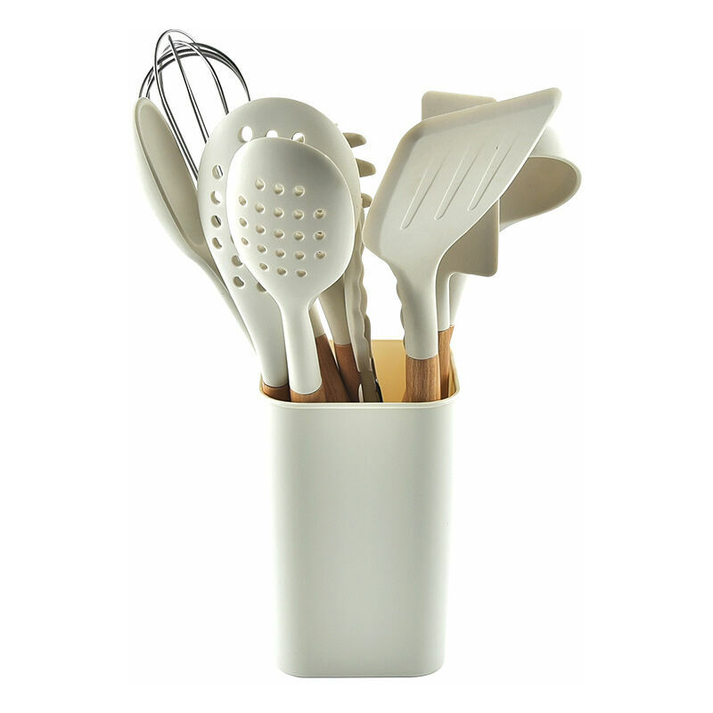 Realizzato in silicone, non tossico. Il manico ha un eccellente isolamento termico e protegge le mani dalle scottature. Durevole e protegge le tue pentole. Non utilizzare uno strumento per la pulizia del metallo ad alta resistenza come una sfera di pulizia. Il manico in legno deve essere lavato a mano. Non mettere in lavastoviglie. Fornitura: 10 pezzi