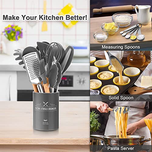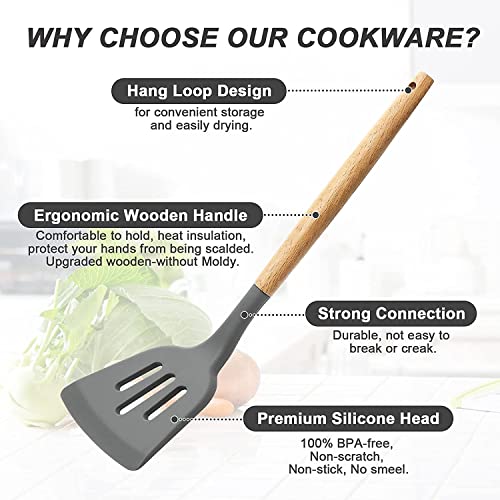 Set di 34 utensili da cucina in silicone, resistenti al calore, con manici in acciaio inossidabile di alta qualità, per cucinare e cuocere, spatole antiaderenti, utensili da cucina (grigio)