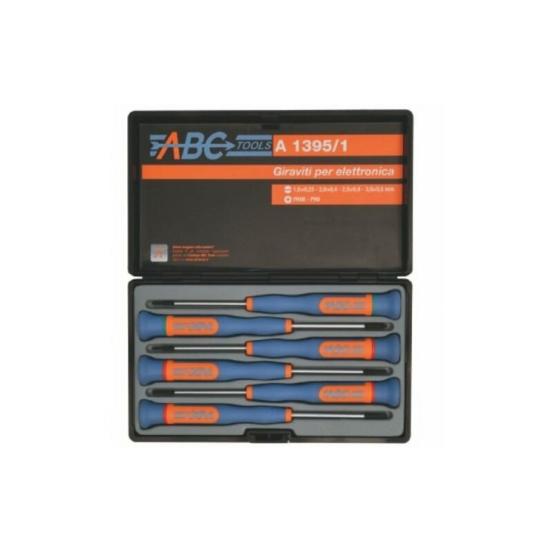 ABC A13951000 GIRAVITI PER ELETTRONICA Con impugnatura a due componenti (una parte in resina sintetica dura ed un'altra in resina sintetica morbida), studiata per consentire alte prestazioni e facili manipolazioni Testa girevole per una posizione ottimale dell'indice ed un utilizzo più preciso con maggiore sensibilità.