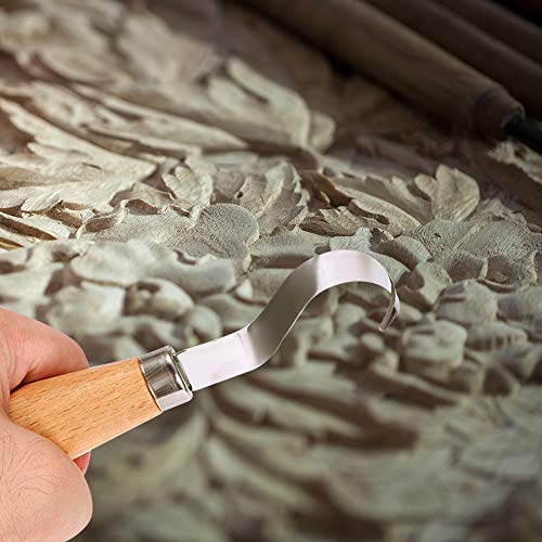 Impugnatura ergonomica: l'impugnatura per utensili da intaglio a cucchiaio è realizzata in legno di faggio di alta qualità, che ha una superficie liscia ed è progettato ergonomicamente. Ha una presa comoda e può essere scolpito a lungo nel legno senza causare affaticamento alla mano.