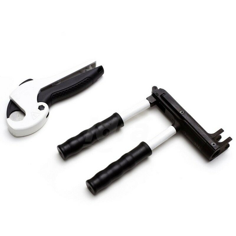 Set di utensili Rehau RAUTOOL K, tipo di set meccanico sanitario / CV, 3 parti, numero totale di utensili 3, contiene manico trombettista / scorrevole 10 x, tagliatubi 25, istruzioni per l'uso B