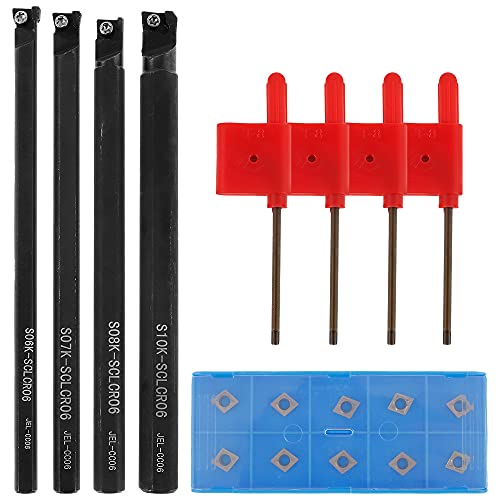 Utensili per Tornio Metallo duro 6/7/8/10mm SCLCR06 Supporto Boring Bar con 10pcs CCMT060204-HM Inserisce e 4pcs Chiave CNC Tornitura Tool