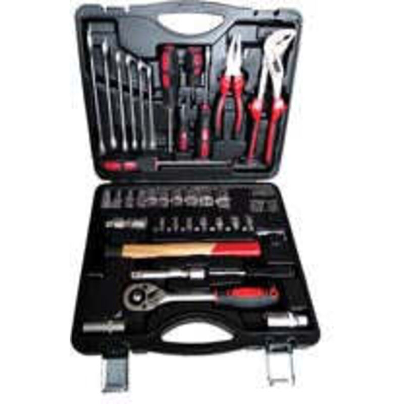 Componenti in acciaio chrome-vanadium contenuto: 10 chiavi a bussola esagonali quadro 1/2 misure mm.10-11-12-13-15-17-19-22-24-27 + 6 chiavi a bussola esagonali quadro 1/4 misure mm.8-9-10-11-12-13 + 6 chiavi combinate misure mm.11-12-13-14-15-17 + 1 pi