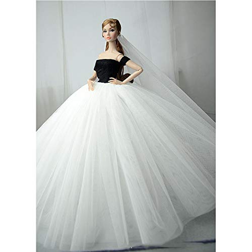 Uteruik - Abito da sposa con spalle scoperte per bambole da 25,5 cm, per abito da sposa, vestito da testa, velo, accessori per costume (#E)
