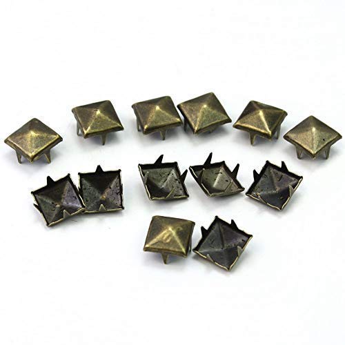 Uteruik 12mm Bronzo Rivetti Quadrati Piramide Borchie Testa, Chiodini Leathercraft Goth Punte per Fai da Te, Accessori per Scrapbooking, 100 Pezzi