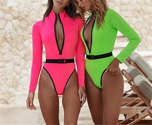 Uteruik Costume intero da donna con cerniera fluorescente a maniche lunghe, costume da bagno M, 1 pezzo (#A)