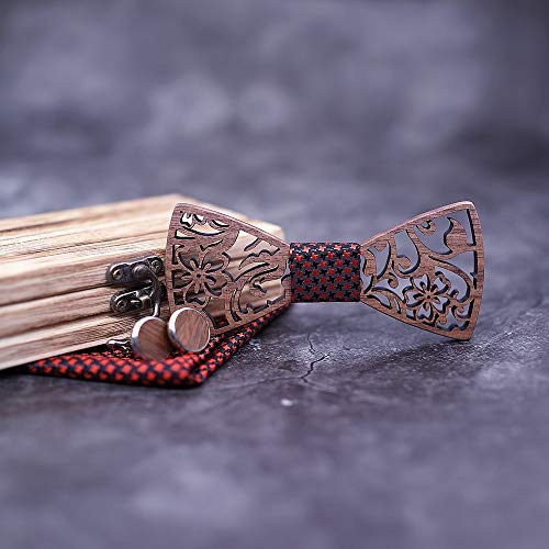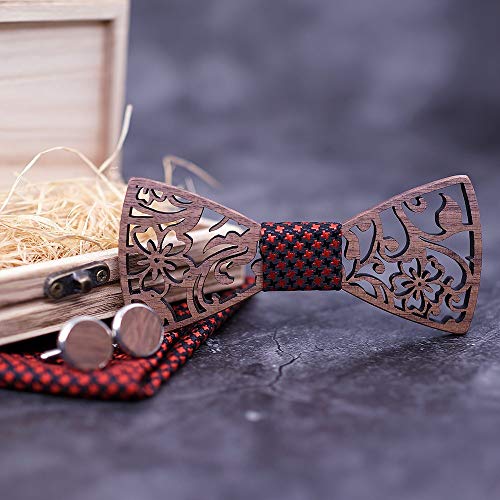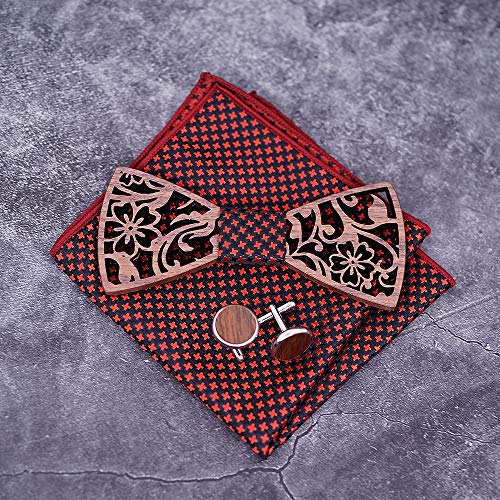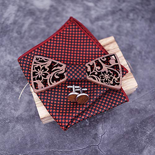 Uteruik Gemelli in legno con papillon quadrato sciarpa fazzoletto set papillon cavo per uomo abito da sposa accessori con confezione regalo (#A)