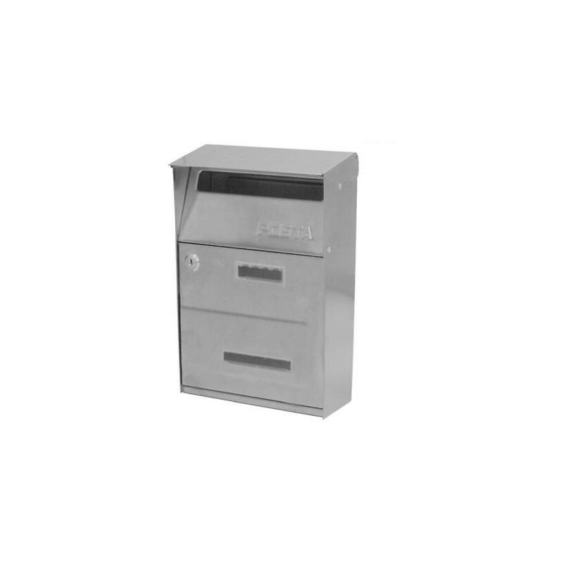 CASSETTA POSTALE IN ACCIAIO INOX MONACO CM.21x8,5x30,5 In acciaio inox Serratura a cilindro con 2 chiavi Tetto parapioggia Dimensioni mm. 210x85x305 h