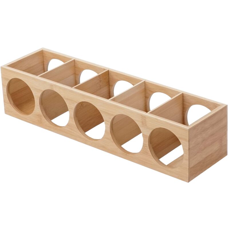 Merce non controllata da reso Portabottiglie modello HHG-749 materiale bambù per 5 bottiglie Questo pratico portabottiglie può contenere fino a 5 bottiglie. Non vi basta? Acquistando altri portabottiglie potrete aggiungerne uno sopra l'altro, impilalandoli con estrema facilità. Il prodotto è realizzato in legno bambù e viene consegnato già assemblato. consegna: 1x portabottiglie (senza decorazione) capienza: 5 bottiglie realizzato in legno bambù impilabile consegnato già montato dimensioni (ca.): altezza: 53cm larghezza: 14cm profondità: 13cm diametro vano bottiglia: 8cm