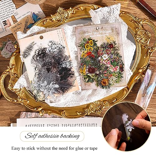 【Alta qualità】Adesivi fiori e farfalle scrapbooking realizzato in PVC trasparente, varie forme e colori, superficie liscia, impermeabile, non facile da sbiadire.