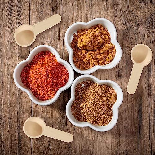 【Cucchiaio di legno fatto a mano】La confezione contiene 50 mini cucchiai spezie rotondi, una quantità molto generosa, in modo che tutte le vostre spezie siano dotate di un cucchiaio di legno, sufficiente per i vostri diversi usi.