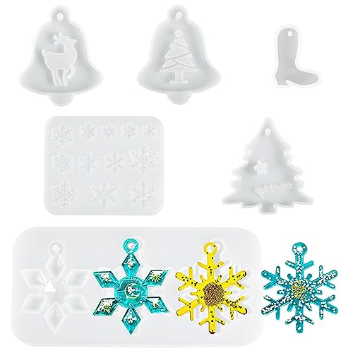 UTMACH 6 Pezzi Stampi in Silicone Resina di Natale Stampi Resina Fiocchi di Neve di Natale Fiocchi Neve Stampi in Resina Stampo di Resina Natalizio con Foro Appeso per la Decorazione di Natale