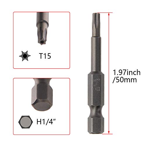 Utoolmart - 20 punte magnetiche per cacciavite Torx T15, attacco esagonale da 1/4", lunghezza S2, a prova di manomissione