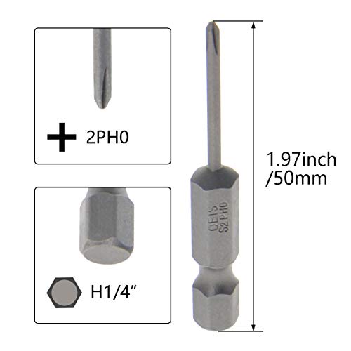 Utoolmart 2mm PH0 punte magnetiche per cacciavite Phillips, 1/4 di pollice esagonale gambo 50mm lunghezza S2 strumento elettrico 20 pezzi