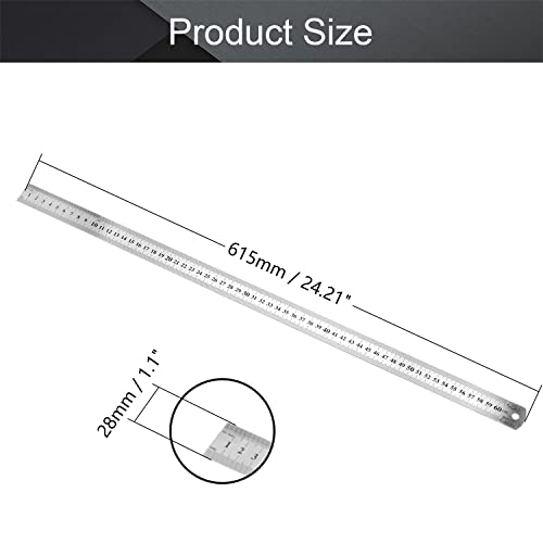 Utoolmart - Righello dritto, 600 mm, metrico 28 mm, larghezza in acciaio inox, con foro per appenderlo, 2 pezzi