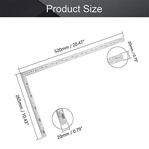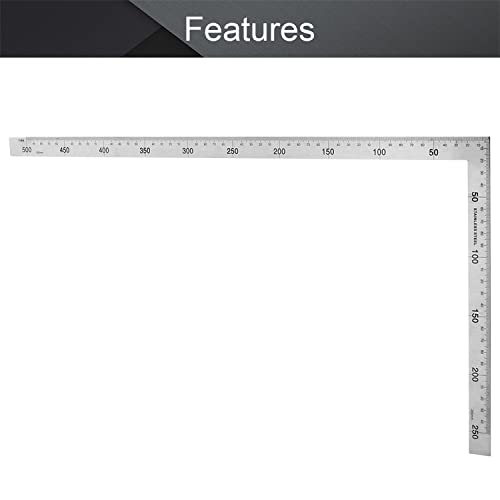 Utoolmart - Righello quadrato in acciaio inox a forma di 90 gradi, doppio angolo laterale per falegnameria a L, strumento di misurazione quadrato, 1 pezzo, UT191108C-0073, Low-end 250×500mm