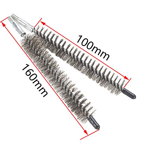 Utoolmart - Spazzola per camino in acciaio inox, diametro 6 mm, lunghezza totale 160 mm, setole da 20 mm, larghezza di lavoro per sbavatura e pulizia fori forati, 2 pezzi