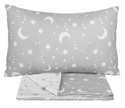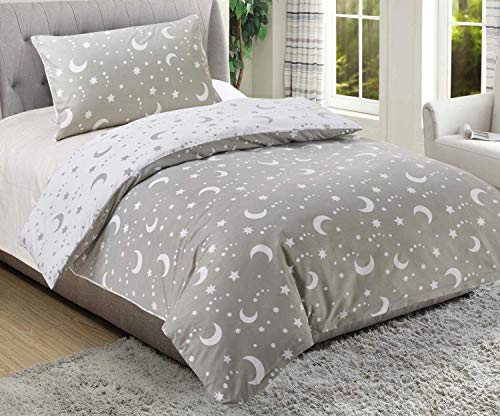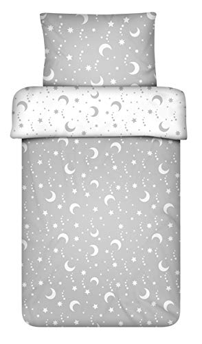 Utopia Bedding Set di Biancheria da Letto per Bambini - 100% Microfibra - Stella e Luna Set Copripiumino Reversibile (Copripiumino + 1 Federa) - (Grigio, Lettino/Junior 120 x 150 cm)