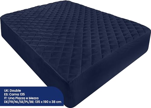 Utopia Bedding Coprimaterasso Trapuntato 135x190 cm, Topper Materasso Elastico Aderente, Gonna di Proteggi Materasso con Motivo a Diamante Si allunga Fino a 38 CM Tasca Extra Profonda (Blu Marino)