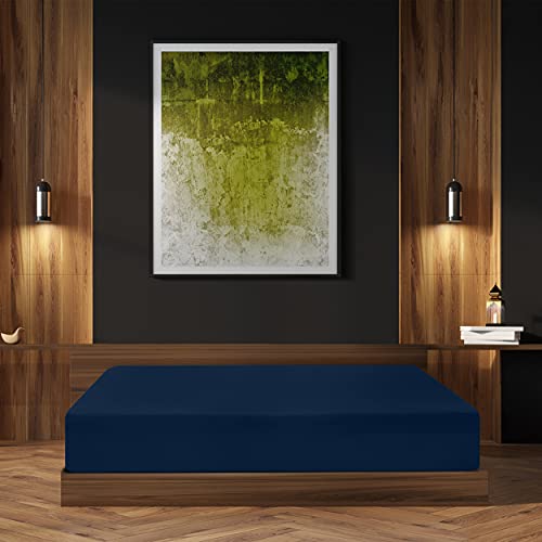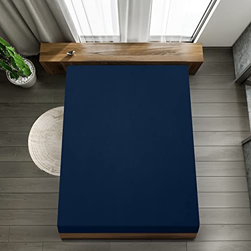 Utopia Bedding - Lenzuolo con angoli in jersey - Polycotton - 35 cm di tasca profonda (140 x 200 cm, Navy)