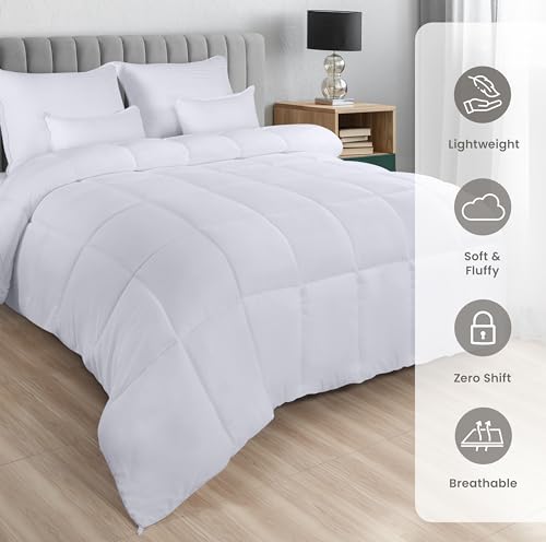 Utopia Bedding Piumino 200 x 200 cm, Piumone Leggero per Letto Una Piazza e Mezza, Trapunta in Microfibra per Tutte le Stagioni, 100% Imbottitura in Fibra Cava (Bianco)