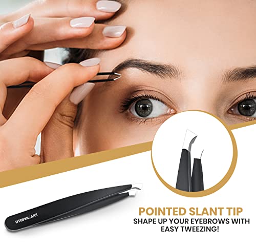 Utopia Care [4 Pezzi] Pinzette Sopracciglia Professionali Acciaio - Pinzette di precisione per capelli incarniti, peli facciali, schegge, punti neri