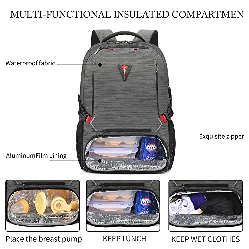 UTOTEBAG Zaino da pranzo da donna scomparto isolato per laptop 15.6 con porta USB e cinturino per skateboard e borsa da basket per uomini/lavoro/affari (grigio scuro)